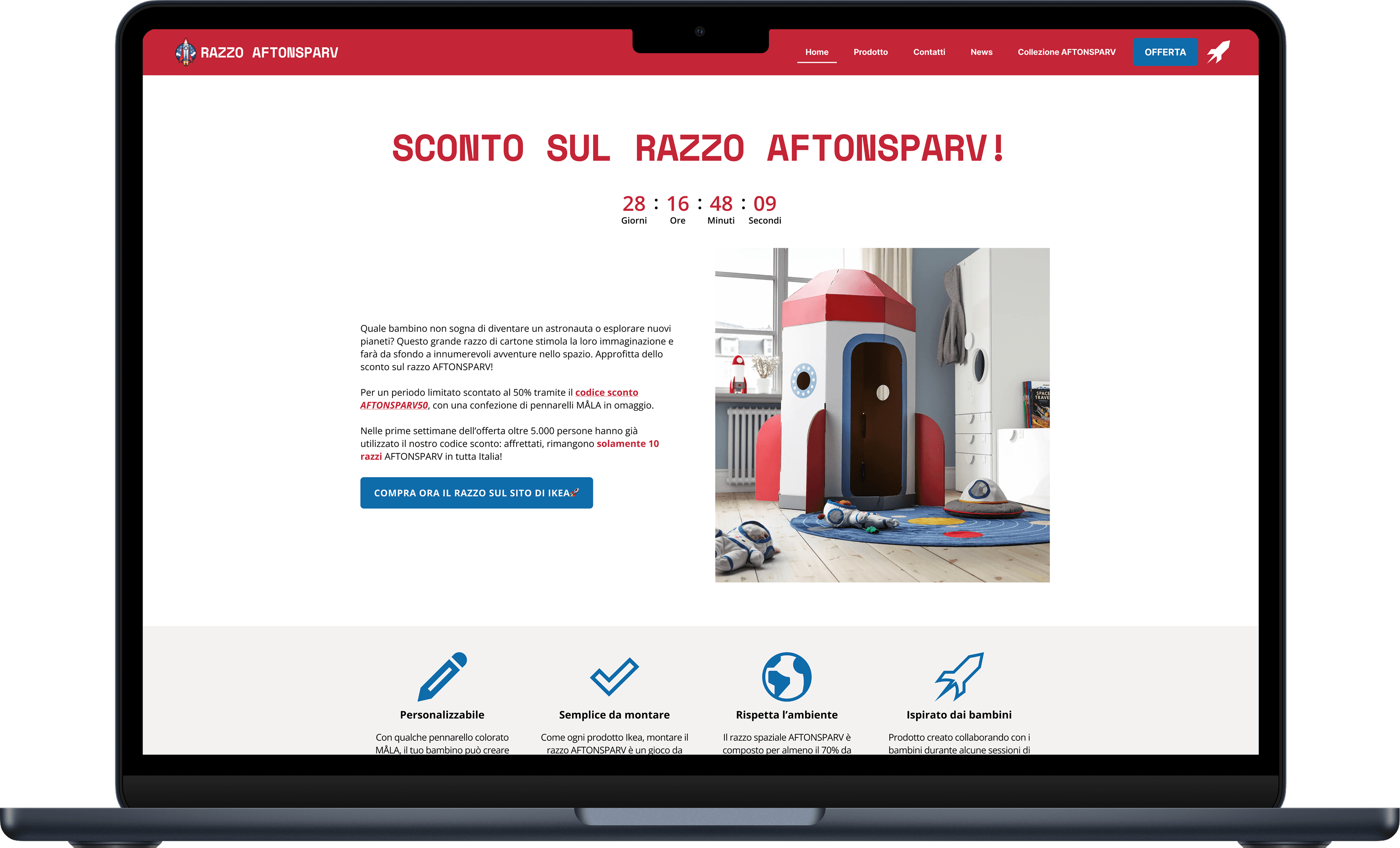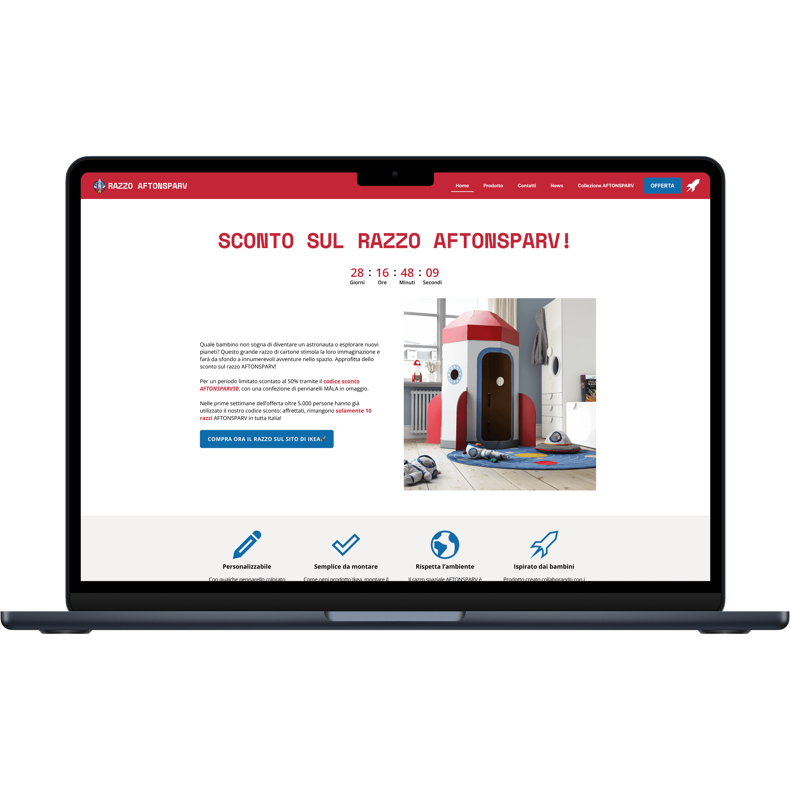 Our website, developed after sketches, wireframes and mockups, presents the AFTONSPARV rocket, from the homonymous Ikea collection.