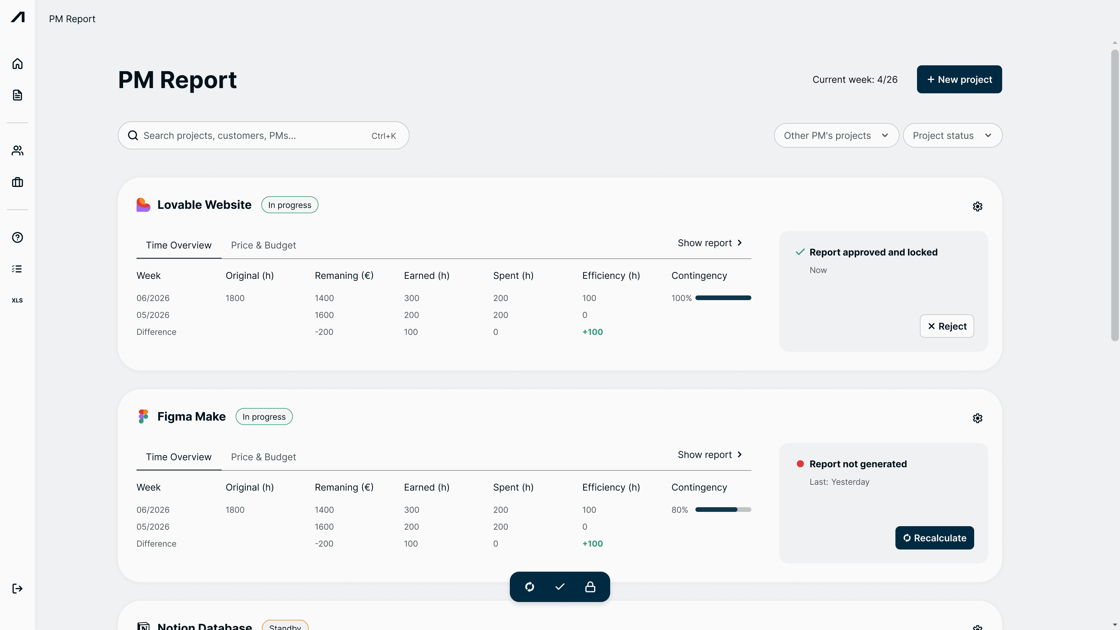 Again, the default view is to display just one’s own projects, with the possibility to display other PMs’ projects with a filter.